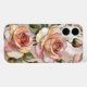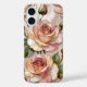 Elegant iPhone case featuring a stunning stained glass style rose design with soft pink and peach tones accented by delicate gold details. The large, detailed flowers create a romantic and luxurious look that feels both timeless and eye-catching.