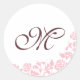 Pink Rose Lace Initial Script Monogram Classic Round Sticker