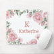 Pink Rose Monogram Name mousepad with 'Year Established' custom inscription.
