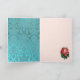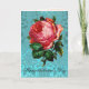 PINK ROSE ON AQUA BLUE DAMASK Valentine's Day Holiday Card