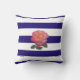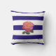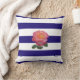 Pink Rose on Navy Blue and White Striped Throw Pil Cushion