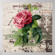 Square poster of a Pink Rose on rustic wooden panel with ephemera.