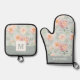 Pink Rose Pastel Garden Pattern Oven Mitt & Pot Holder Set