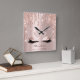 Pink Rose Pastel Sparkly Diamond Lotus Princess Square Wall Clock