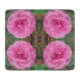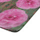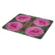 For lovers of the colour pink - The pattern on this 6”x7” Cutting Board was made from an original photograph by HomeWare of a beautiful pink garden rose. The flower is open wide, with all of its petals in ruffled layers. The pink colour becomes deeper in the centre of this lush bloom. The photo of the flower, with its surrounding green leaves and earth, has been repeated to form this original design. Thus the background of the roses looks a bit like an Oriental rug in soft shades of greens and earth tones.