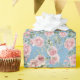 Pink Rose Peony Flowers on Blue Wrapping Paper