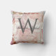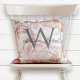 Pink Rose Peony Script Monogram Wedding Keepsake Cushion