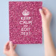 Your humourous personalised Keep Calm saying on a fine custom pink style decor. A personalised Keep Calm style saying. Humourous or whimsical try on your creative words on two editable lines of text. Remember to use CAPITAL letters for best results.