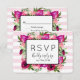 Pink Rose & Poppy Floral Bouquet Wedding RSVP Card