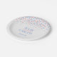 Beautiful stylised graphic confetti scattered dots add your own wedding names and wedding date paper plates. A great personal addition to your wedding tables or for after wedding drinks or a wedding after party. Personalise with your bride and groom's names. Perfect for a pink rose quartz and serenity blue themed wedding, engagement, or anniversary. Original art and design by Sarah Trett.