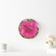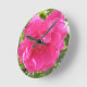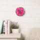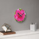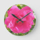 A Round Clock with a Picture of a Pink Rose on the Face.
