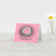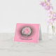 A greeting card with a pink rose showing through a pink blurred vignette. The text reads "Congratulations". The text is customisable and can be changed by the buyer. This card would be suitable for several happy occasions, including the arrival of a new baby girl.