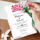 This pink background is accompanied with a red simple, yet stylish hand lettered design that says "You're Cordially Invited" heading without an outline surrounding it. Decorating the right edge of the background is my smooth, soft, painterly illustration of a glass vase with white and pink roses inside it. The invitation is customised for you to type in your personal information. All of my artwork, which includes backgrounds, letter art and borders, are proudly created with NO AI and NO third party artwork. In other words, each item is 100% created by me – Christie Taylor.