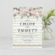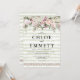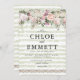 Pink Rose White Hydrangea Green Striped Wedding Invitation