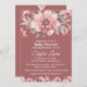 Dusty Pink Rose with Beautiful Greenery Baby Shower Invitation with a darker dusty rose background. The front of this invitation features a Big Dusty Pink Rose with Beautify Greenery at top of the baby shower invitation with small pink roses and beautiful greenery at the the bottom of the invitation with a darker dusty rose background. Down the centre of the invitation is the invitation to join, event, person to be honoured, mum's name, date and time, venue details, RSVP, and Registry details written in a mix of classic serif typography and elegant script hand-lettering in a white colour .The back of the invitation is a Darker Dusty Rose background with a diamond shape helix going down the middle of the invitation with the colours in the front of the invitation. You can change the wording, arrangement, fonts, colours, size and more by using the tab box on the right of the design, that say "Personalise". Perfect for anytime of the year baby showers. Message me through the button below if you need any help personalising this card. Please note: I can only modify before purchasing, after purchase it can't be modified. Thank you for visiting the store, more designs coming soon.