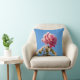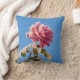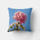 Pink blossom of a rose covered with white hoarfrost crystals in front of blue sky on a cold and sunny winter day. This pillow is a gift idea for nature lovers. Photo taken by Katho Menden.