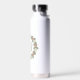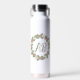 This elegant white metal water bottle has a hand drawn floral wreath of pink roses with green and cream leaves. Centered inside the wreath is your choice of initials, making it a perfect gift or everyday accessory.
