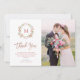 Pink Roses and Rose Gold Script | Photo Wedding Thank You Card
