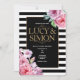 Pink Roses and Stripes Wedding Invitation