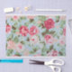 pink roses and white polka dots on light blue tissue paper