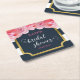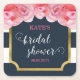 Pink Roses Blue Stripes Bridal Shower Square Paper Coaster
