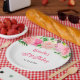 This beautiful and elegant plate features watercolor pink roses and foliage. The text combines handwritten script and serif fonts for a stylish and modern look. This is perfect for a spring or summer rustic birthday.