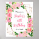 This beautiful and elegant welcome sign features watercolor pink roses and foliage. The text combines handwritten script and serif fonts for a stylish and modern look. This is perfect for a spring or summer rustic birthday party.