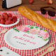 This beautiful and elegant plate features watercolor pink roses and foliage. The text combines handwritten script and serif fonts for a stylish and modern look. This is perfect for a spring or summer rustic bridal shower.