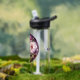 Pretty white and pink roses floral with dark purple background ai art personalised water bottle.