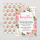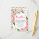 This fun and whimsical wedding reception enclosure card features watercolor pink roses and foliage on a gold geometric frame. The text combines handwritten script and serif fonts for a stylish and modern look. This is perfect for a spring or summer rustic wedding.