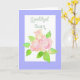 A 'Get Well' card with the greeting in Welsh and a posy of pink Albertine roses from a watercolour painting by Judy Adamson.