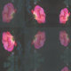 pink roses on deep green wallpaper