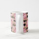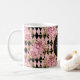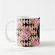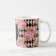 Pretty in pink! Large pink roses with gold embellishment on bold black harlequin diamond background. Customise with monogram in centre black circle