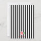 Chic floral birthday party invitations feature pink roses a top border of pink roses and greenery on a black and white stripes background. Personalise with your party details in a modern hand lettered script and traditional sans serif lettering. Invitations reverse to black and white stripes and a small pink rose at the bottom.