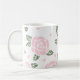 Pink Roses Pattern with Green Leaves and Hearts Coffee Mug