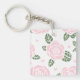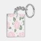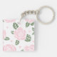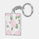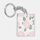 Pink Roses Pattern with Green Leaves and Hearts Key Ring