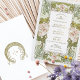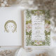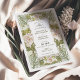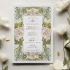 Step into the enchanting world of Art Nouveau with this romantic wedding invitation, perfect for heralding your special day. The front of the card is adorned with a symphony of pink roses, intricately intertwined with sage green and soft olive foliage, framed by the ornate, sinuous lines characteristic of the Art Nouveau style. A delicate ivory background enhances the softly blushing petals and golden accents, capturing the whimsy and organic forms popular in the period's graphic arts. The elegant typography in hues of forest green and sepia adds a touch of sophistication. The reverse is tastefully simple, showcasing an ornamental monogram in coordinating colours. This invitation is a tribute to the art of Alphonse Mucha, capturing the essence of an era that celebrated beauty and nature in every curve and colour.