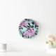 pink roses, roses , turquoise background round clock