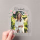 Inspired by a summer rose garden, this graduation announcement acrilic card features a handwritten 'graduate' accent in signature style. Soft blush roses create a beautiful blend of classic romance and modern script typography. Add your graduate's photo in this arched frame with the combination of an arched card makes a sweet boho style graduation announcement.