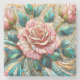 Pink Roses Stained Glass Mosaic Stone Coaster