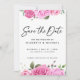 Modern watercolor pink roses with black handwritten style font customisable "Save the Date" invitation. This design features beautiful pink roses and a large calligraphy style font which you can change from black to any other colour you like. You can also personalise all details and text colours on this Save the Date design.