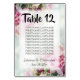Pink Roses Wedding Table Number with Seating Chart