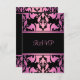 This Elegant customisable RSVP features a pink damask pattern on a black background. Customise it by adding your details in the font of your choice!