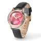 Style: Women's Rose Gold Vintage Watch with Black Leather Strap