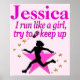 I run like a Champion, try to keep up personalised pretty pink Poster. Motivate your outstanding runner with one of our extraordinary Running designs on Tees, Apparel, Jewellery, Drink ware, Bedroom décor, Posters, and an exceptional selection of gifts at www.zazzle.com/mysportsstar. This Track and Field Girl was meant to be a Sports Star. Our unique and beautiful Track and Running personalised posters and wall art make a treasured gift for Birthdays, Holidays, and any Occasion. This Runner is fast as lightning.