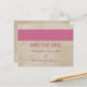 Elegant and chic Rustic Damask Save the Date Postcard featuring a vintage textured paper look background and a flourish damask pattern border in magenta. Easy to customise, simply add your wedding details. Click "Customise It" to find more personalisation options.