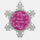 Cute and charming Rustic Holly Pewter Snowflake Ornament in magenta featuring a delicate Christmas holly frame with a woodgrain look background. Easy to customise, add your own personalised holiday greeting. Click "Customise It" to find more personalisation options.