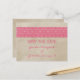 Simple and elegant Rustic Lace Save the Date Postcard featuring a vintage textured paper look background and a sweet and dainty lace pattern border in magenta. Easy to customise, simply add your wedding details. Click "Customise It" to find more personalisation options.