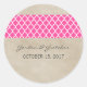 Elegant and sophisticated Rustic Quatrefoil Wedding Stickers featuring a vintage textured look background and a modern pattern border in magenta. Easy to customise, simply add your wedding details. Click "Customise It" to find more personalisation options.