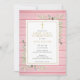 Pink Rustic Wood Greenery First Holy Communion Invitation